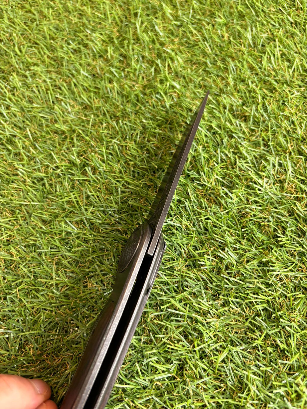 A lâmina possui acabamento escurecido e perfil afiado, oferecendo excelente desempenho em cortes diversos. O formato alongado proporciona boa penetração e controle, sendo ideal para atividades ao ar livre, uso utilitário, camping, pesca ou coleção.