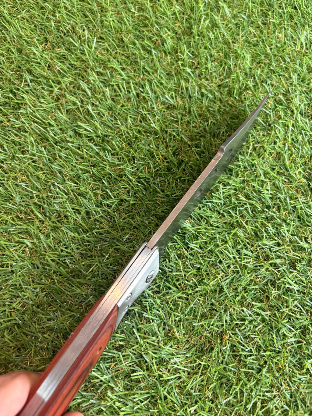 A lâmina possui acabamento escovado e perfil afiado, ideal para diversas tarefas do dia a dia, atividades ao ar livre, camping, trilhas ou uso utilitário. O formato da lâmina proporciona boa capacidade de corte e perfuração, enquanto os recortes no corpo ajudam a reduzir peso sem comprometer a resistência.