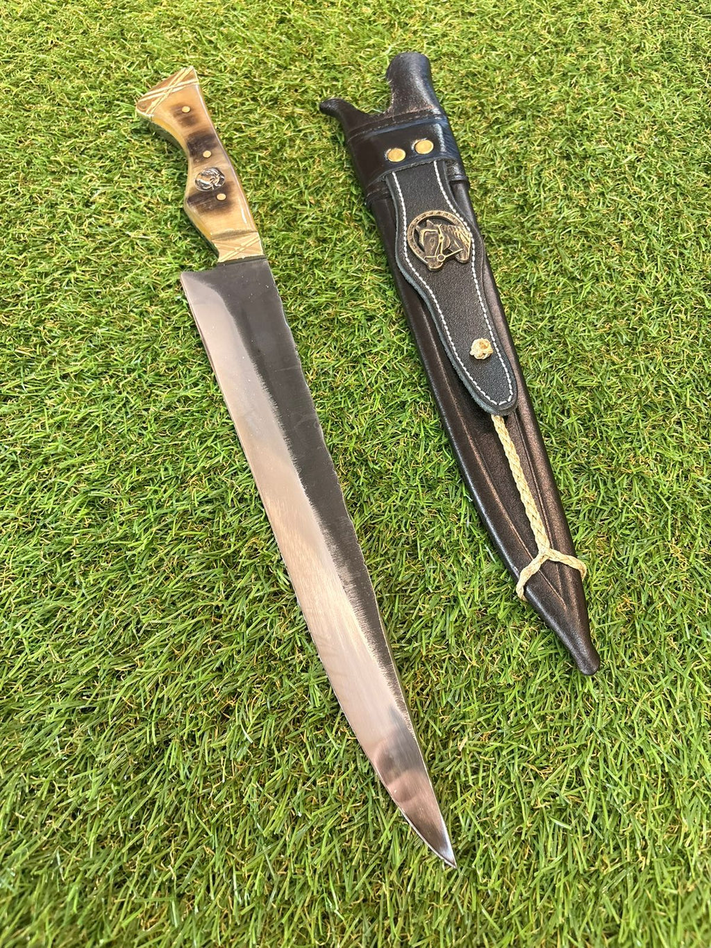 Cabo composto por chifre bovino com pingente de cavaloFull tang
