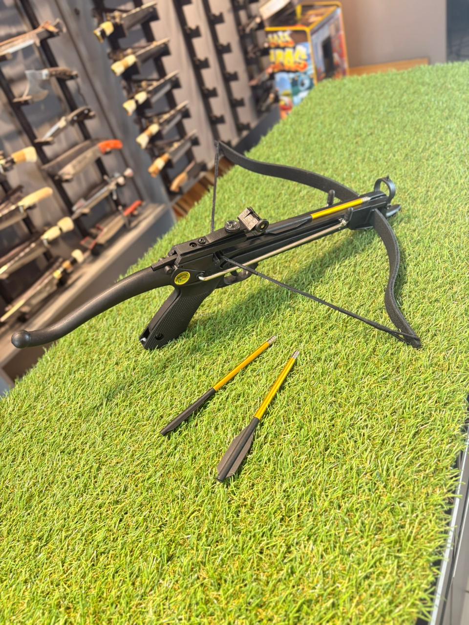 Com 85 libras de força, essa mini crossbow oferece disparos firmes e estáveis, ideal para prática de tiro ao alvo e treinamento. Seu corpo em polímero reforçado garante leveza e resistência, enquanto o arco recurvo em fibra proporciona desempenho consistente. O gatilho suave e o design ergonômico com empunhadura antiderrapante oferecem controle total do disparo.
