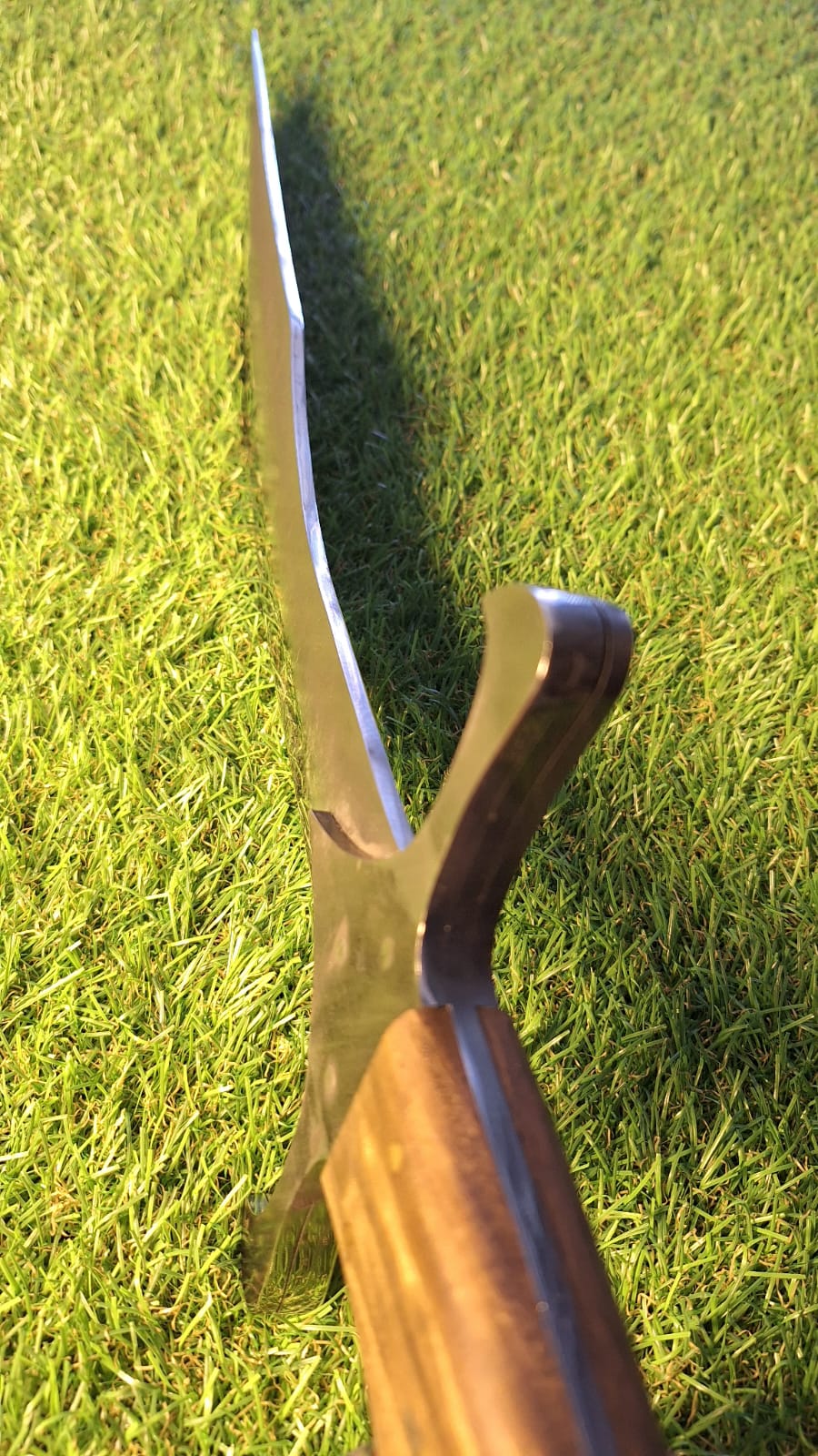 Lâmina curva estilo cimitarra, ideal para cortes amplos e potentes