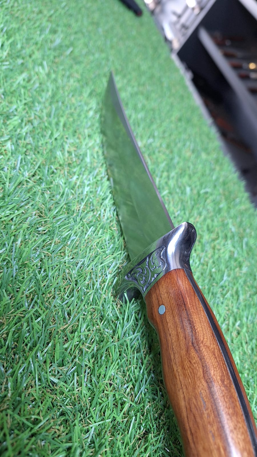 Detalhes gravados no aço da guarda elevam o design da faca, remetendo ao estilo nobre e artesanal das lâminas de elite.