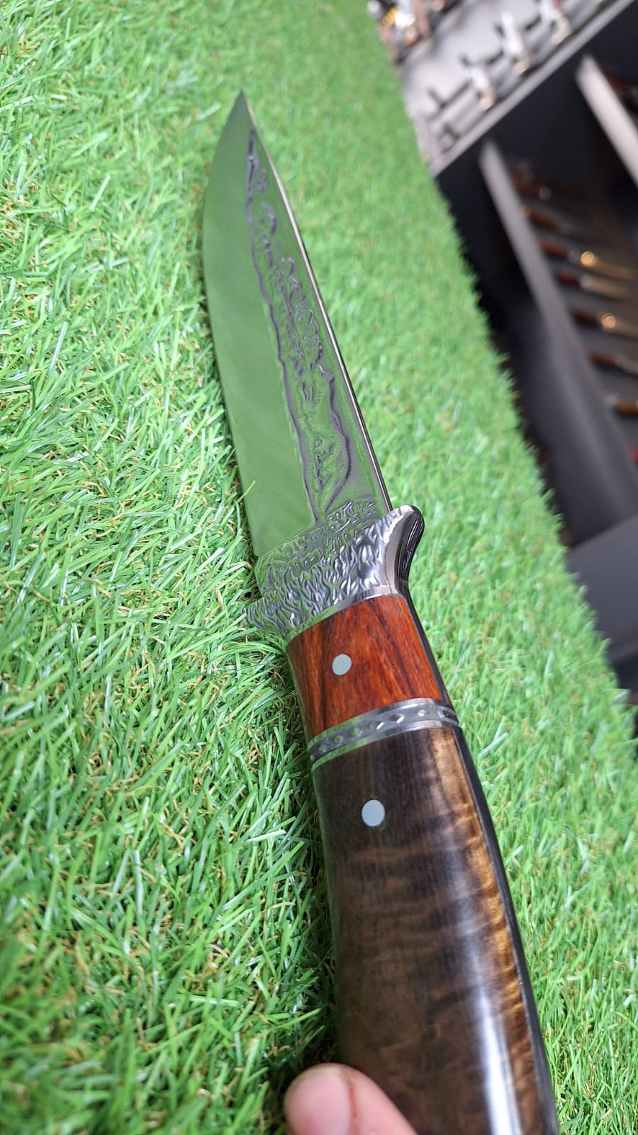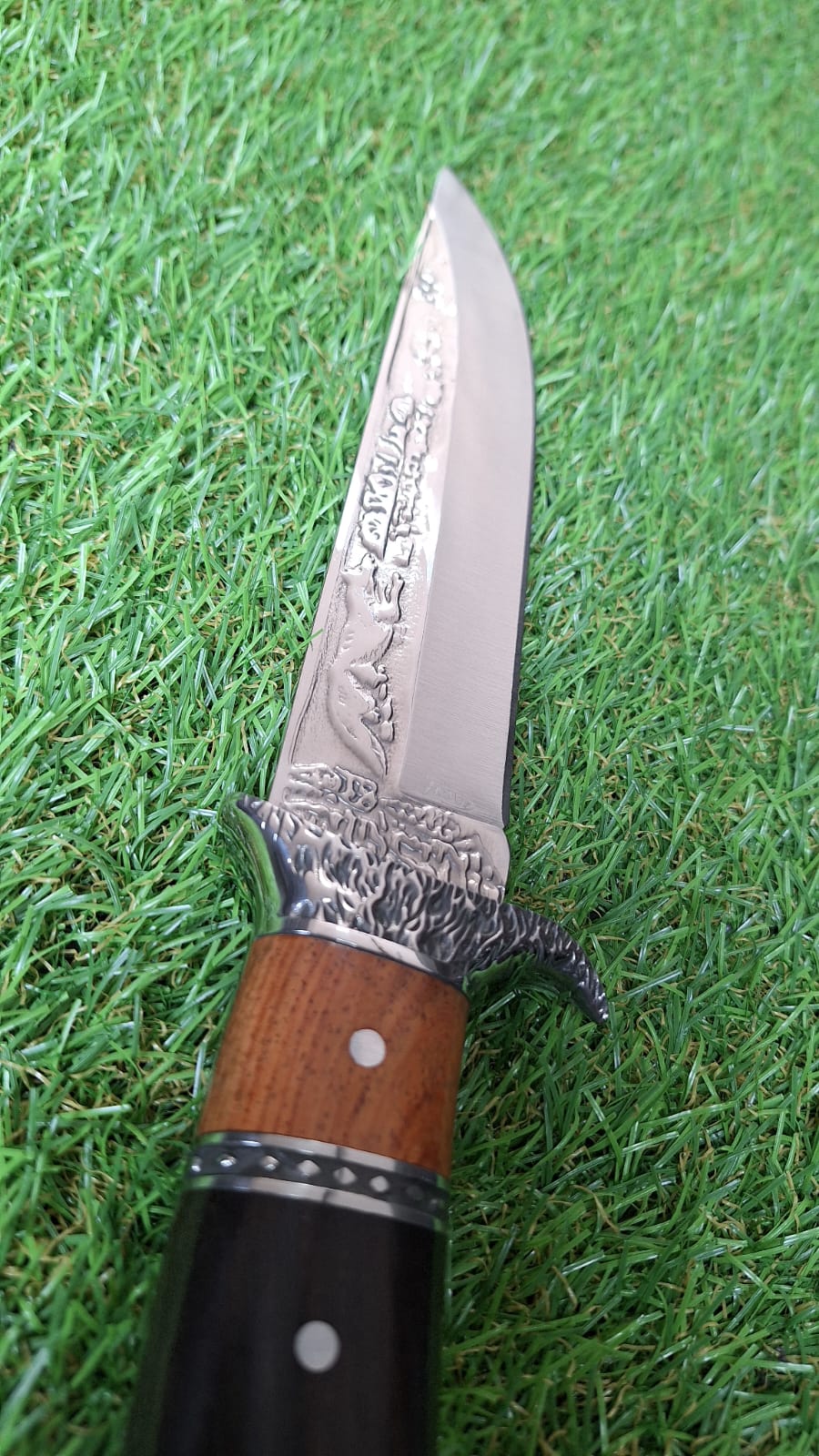 Lâmina em aço inox 420c com detalhes em alto relevo