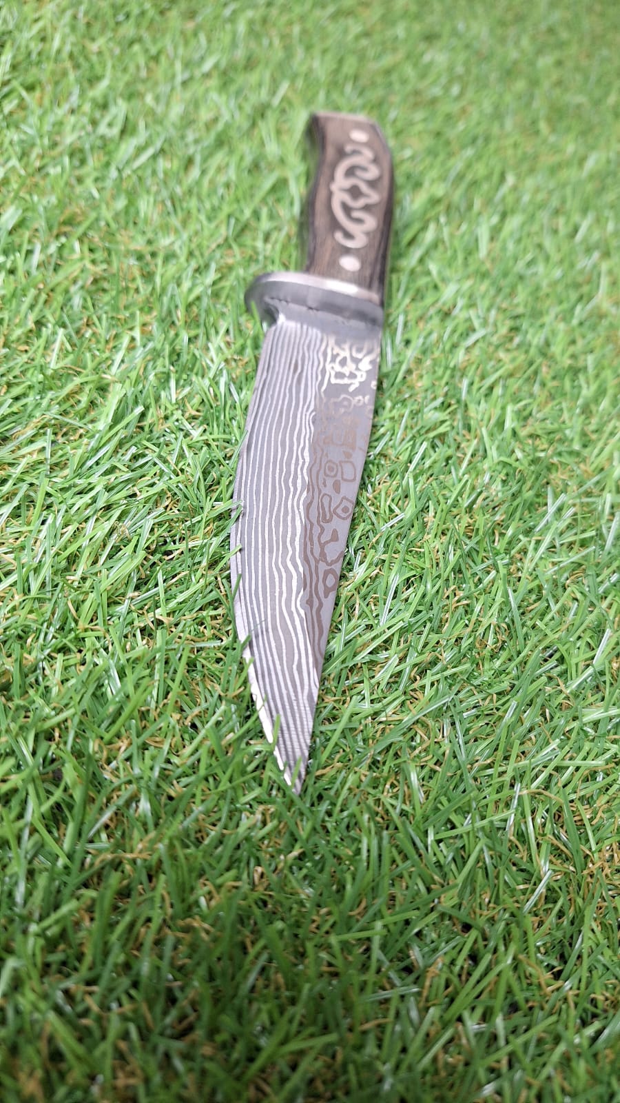 Lâmina em aço inox 420 com padrão Damasco a laser