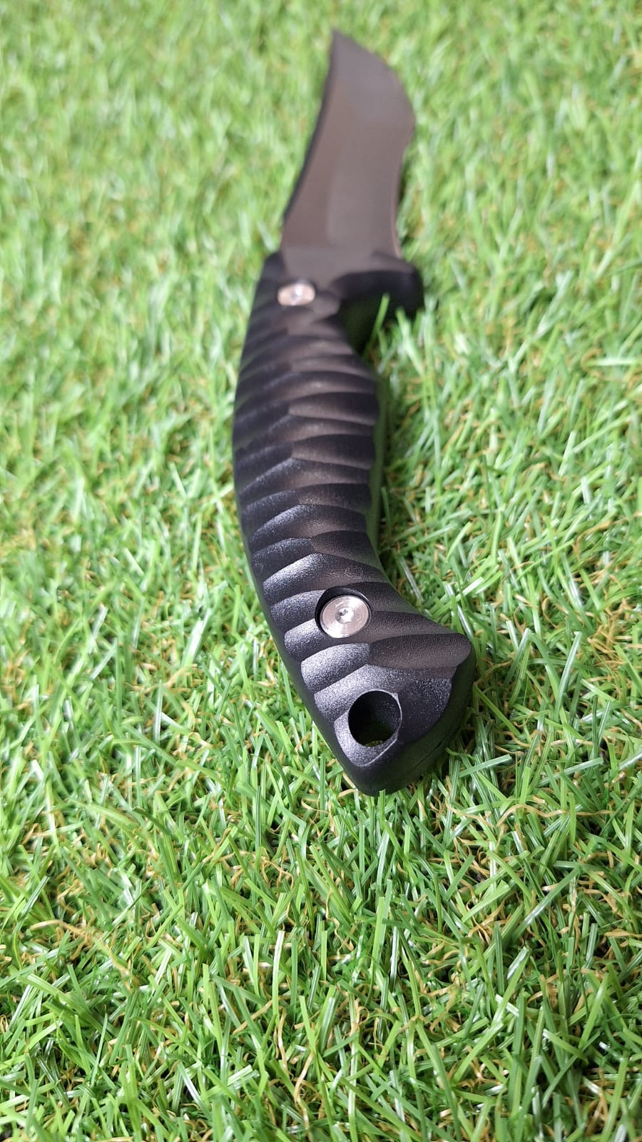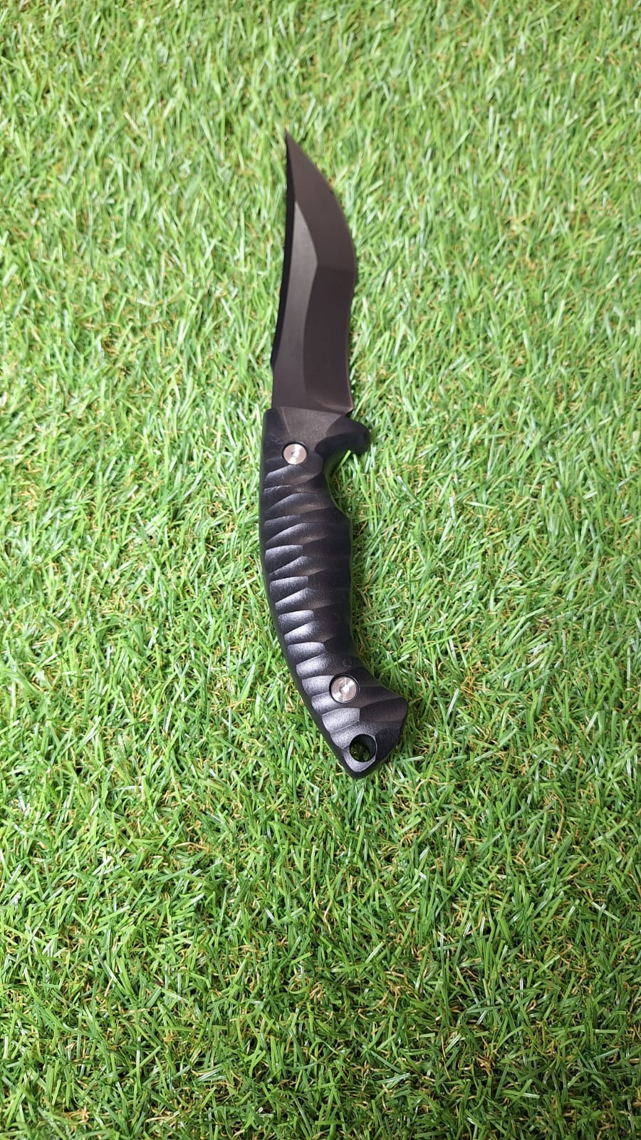 Curvatura estratégica com ponta projetada para perfuração e cortes firmes. Ideal para uso em campo, tático ou como peça de defesa pessoal.