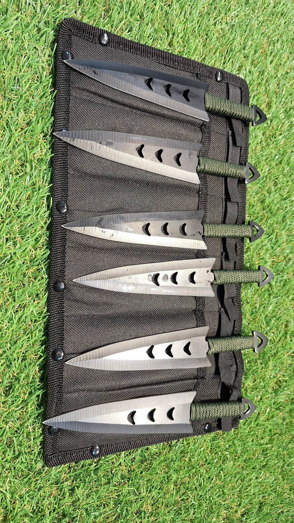 Kit com 6 facas de arremesso e estojoFacas em aço inox com fio duplo