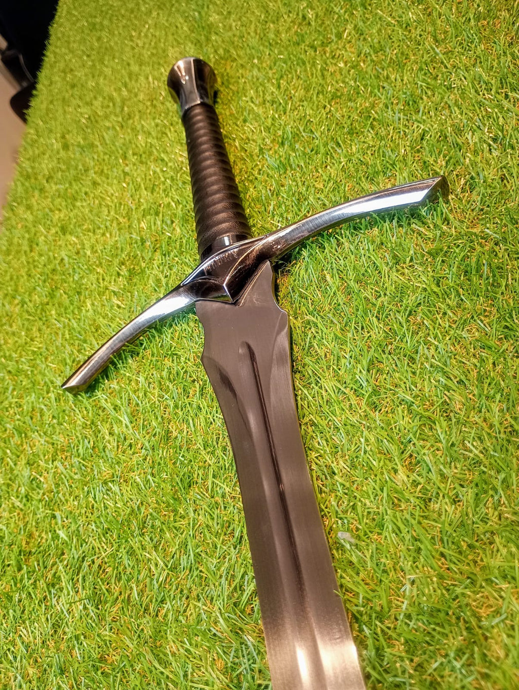 Cabo detalhado com acabamento premium, remetendo às descrições élficas da obra.