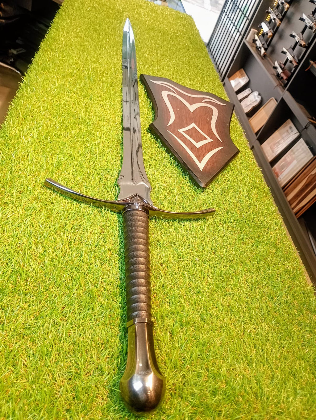 Inspirada na lendária espada de Gandalf, Glamdring é uma das armas mais icônicas da Terra Média, forjada na Primeira Era para o rei élfico Turgon. Redescoberta por Gandalf na caverna dos trolls em O Hobbit, ela o acompanhou em todas as batalhas de O Senhor dos Anéis. Conhecida como o "Martelo dos Inimigos", Glamdring é símbolo de poder e nobreza entre os elfos de Gondolin.