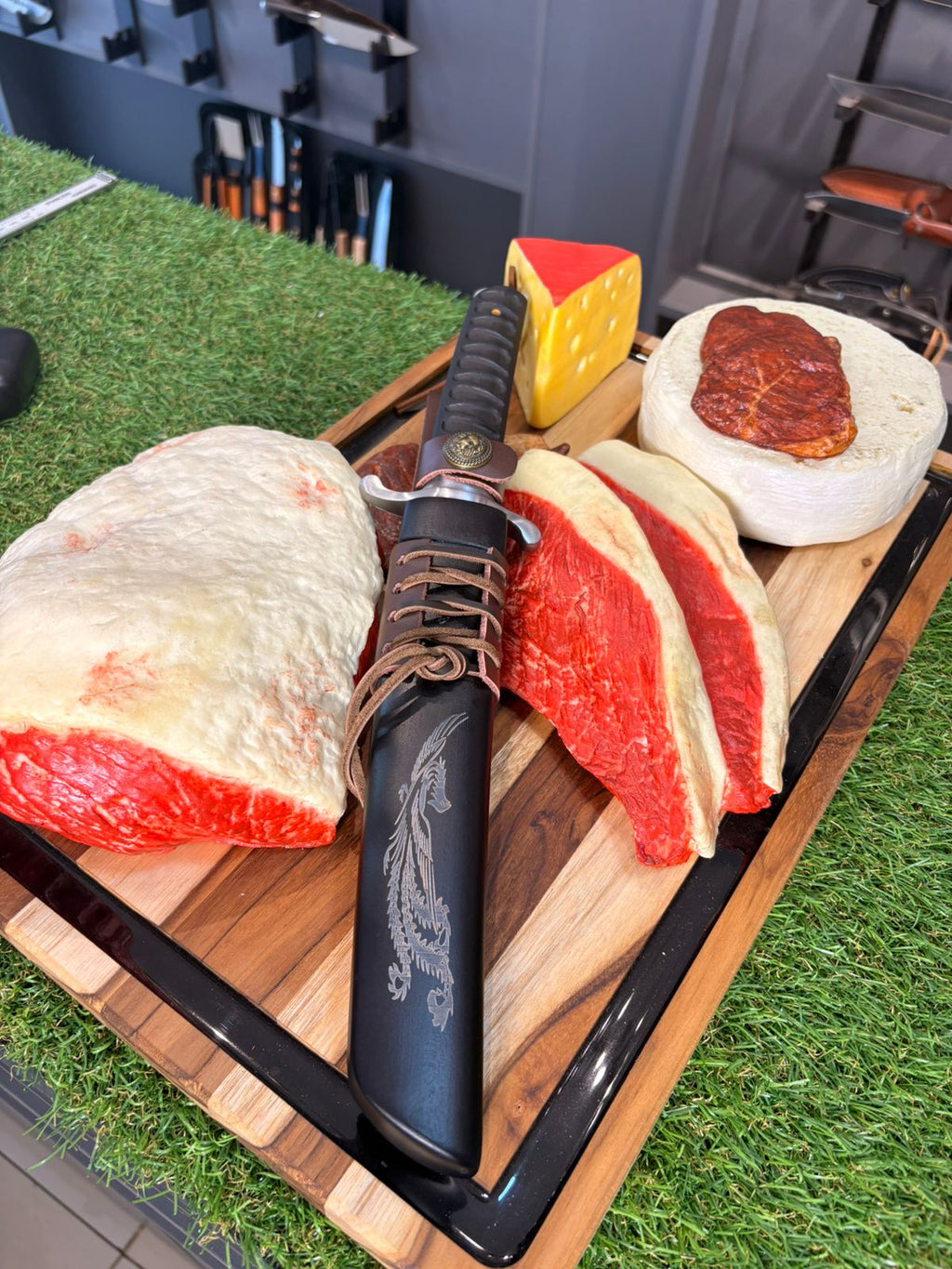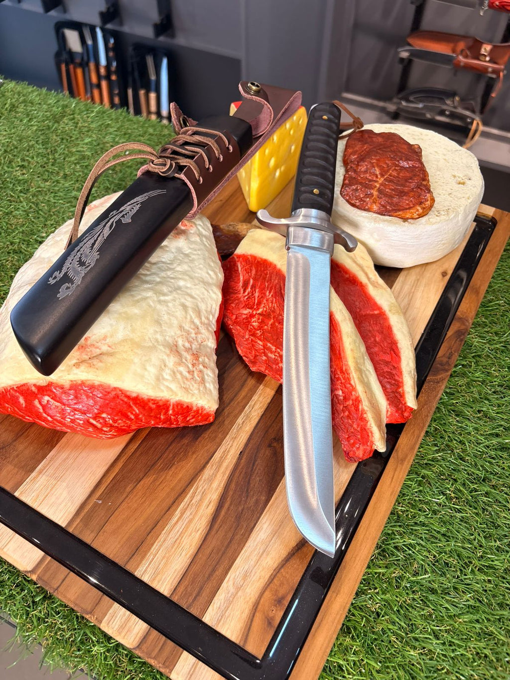 Acompanha bainha rígida com acabamento refinado e detalhes gravados, elevando o nível da peça.