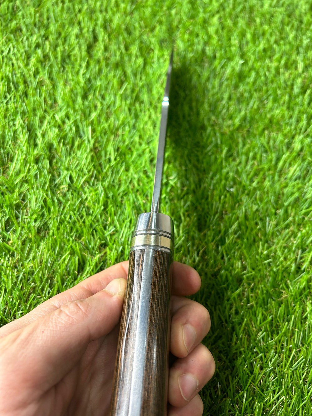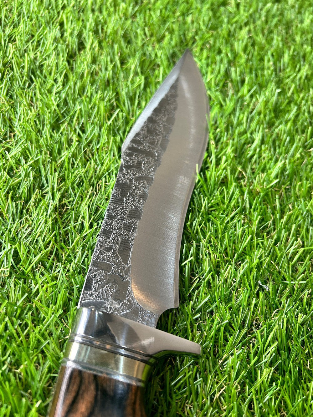 Aço Inox 420ccCabo em madeira resinadaFull TangGuarda em InoxExcelente empunhaduraAcompanha bainha de transporte em nylon militar